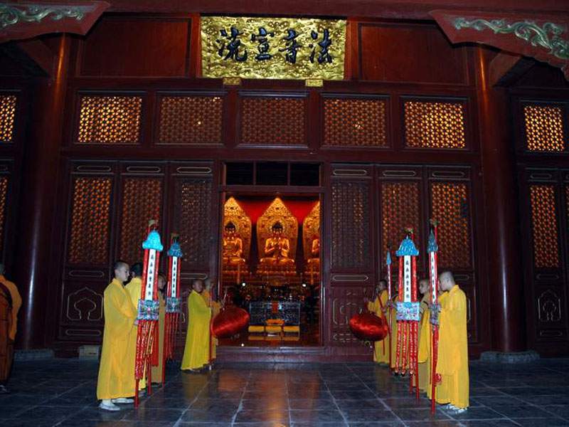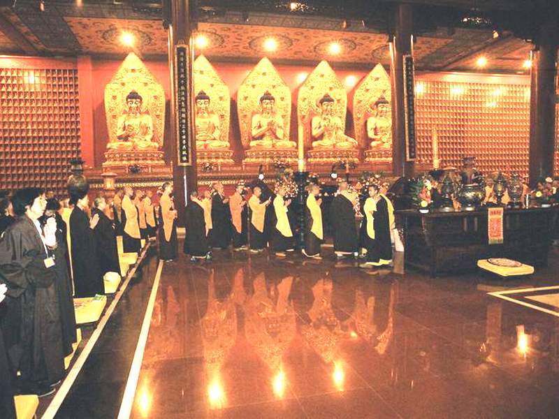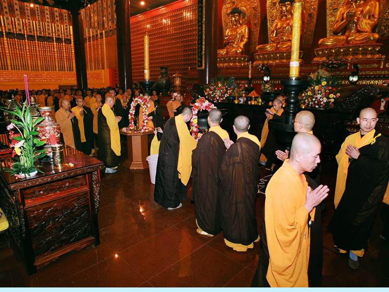 本寺一年一度的传授在家居士菩萨戒法会从五月一日(农历四月初四)洒净开始,到五月四日(农历四月初七),历时四天,圆满结束。五月五日(农历四月初八)佛诞日,众得戒佛子与成千上万蜂拥而至的四众弟子欢喜浴佛,僧俗大众法喜充满,为传戒法会增添了特别喜庆的气氛。