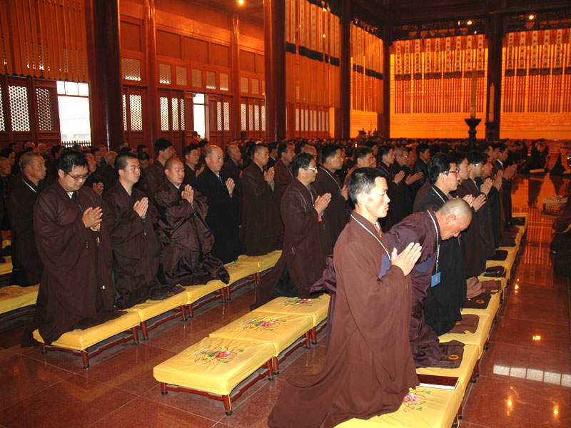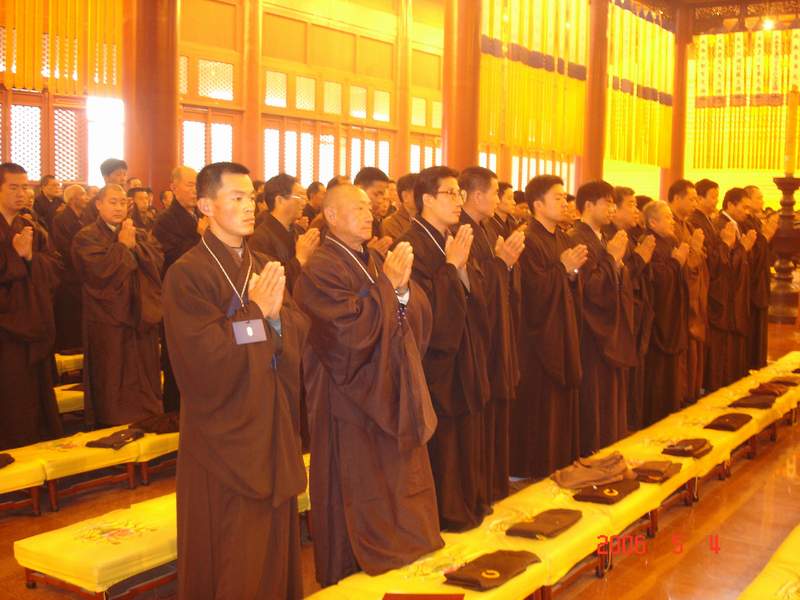 本次法会受菩萨戒佛子330 余人,净慧老和尚为得戒和尚,明海大和尚为教授阿阇梨,慧琳首座为羯磨阿阇梨。授戒当日由明海大和尚、明憨法师、常照法师主持仪轨。四月初八佛诞日明海大和尚在万佛楼为信众传授三皈五戒1600余人次。