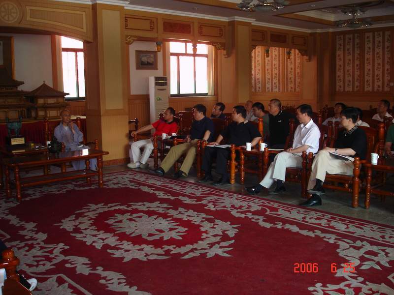 24日上午,明海大和尚向这些来自各地的企业界人士作了《禅与企业管理》的开示,从“内在与外在”“聚财与散财”“管人与管心”三个方面,阐示了企业的经营者如何在全球经济一体化的大背景下,坚守中国传统文化精神,和谐发展的思想。他说,佛教重视主观世界的改造,因为外在世界是内心世界的拷贝,客观世界是主观世界的投影。在企业发展的同时,人的内心修养也要得到提升,内在外在是配套的。如果把内在比作容器,容器小,外在的水就会溢出来,内在的容器不随之扩大,就会被淹没,就失去平衡。内在是一个无限,至大无外至小无内。时间空间都不能限制它,落实在现实层面也是内在外在都是无限的,没有隔阂的。财富的实现只是你在实现一个份额,从宏观上并没有得到和失去。通过外在的功业再不断向未知领域探索,在这样的过程中,你会成为一个内在的富翁,成为内在财富的老板。