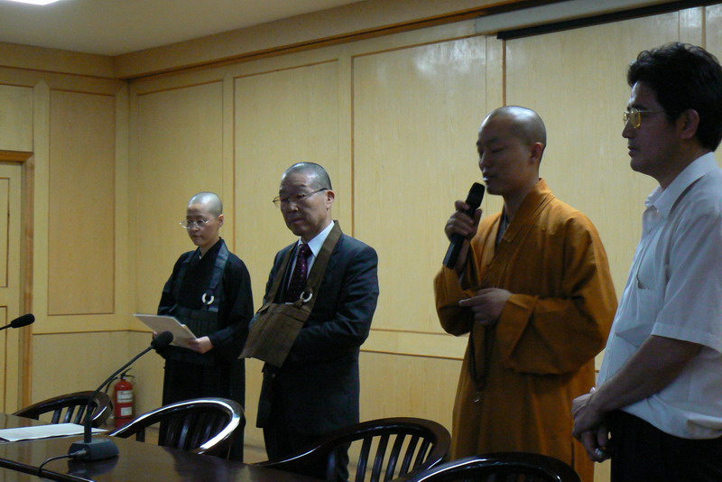 由于木村先生不懂中文,张文良博士和池丽梅博士为他做了即时而准确的翻译。演讲结束后,明海大和尚说:从木村先生的演讲我们知道,赵州禅师不仅影响了唐宋以后的中国禅宗,他也影响了日本的曹洞宗和临济宗。我们有缘在赵州禅师的道场修行,希望大家能用更多的精力和时间去研究赵州禅师,去身体力行赵州禅法。