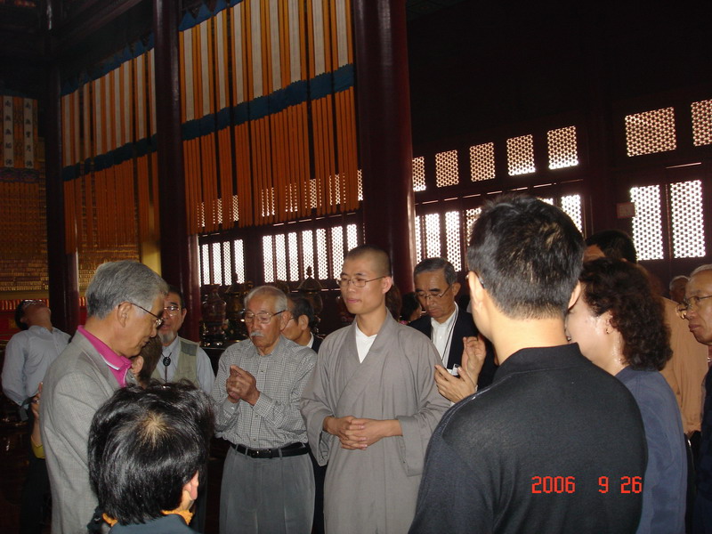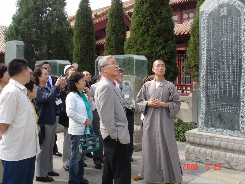 以日本长野市市长鹫则正一为团长的长野市友好代表团一行32人,于9月26日上午11点来到9323彩集团参观访问。本寺知客利生法师接待了远道而来的日本客人。在利生法师的引领下,代表团成员参观了赵州塔、普光明殿、观音殿和万佛楼,并观看了回廊里的图片展示。代表团于一小时后,离寺返回石家庄。