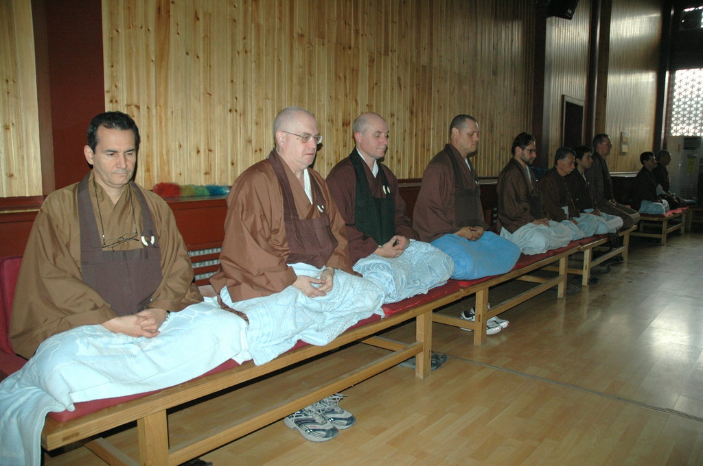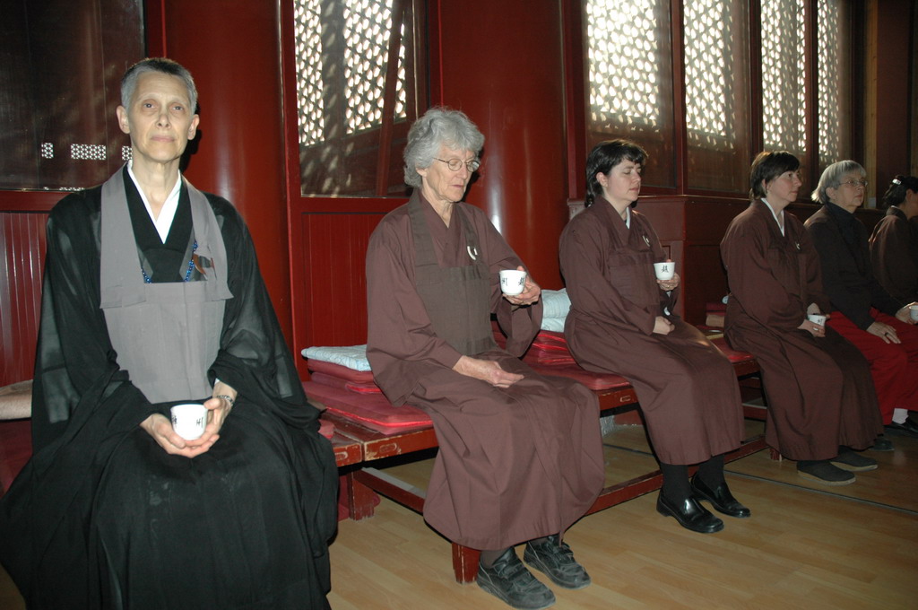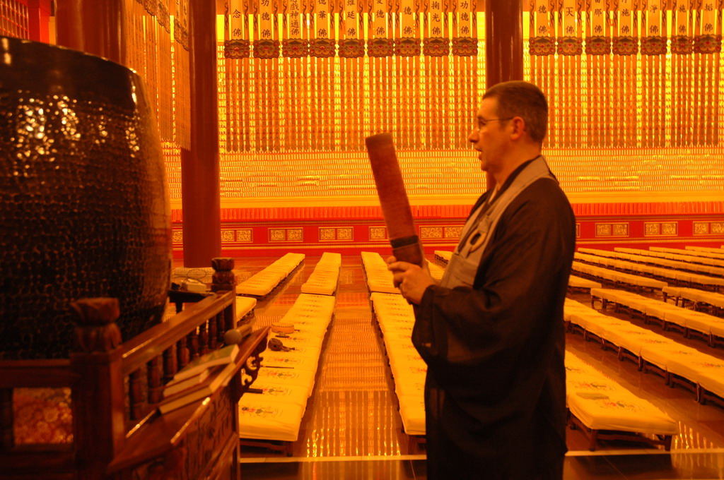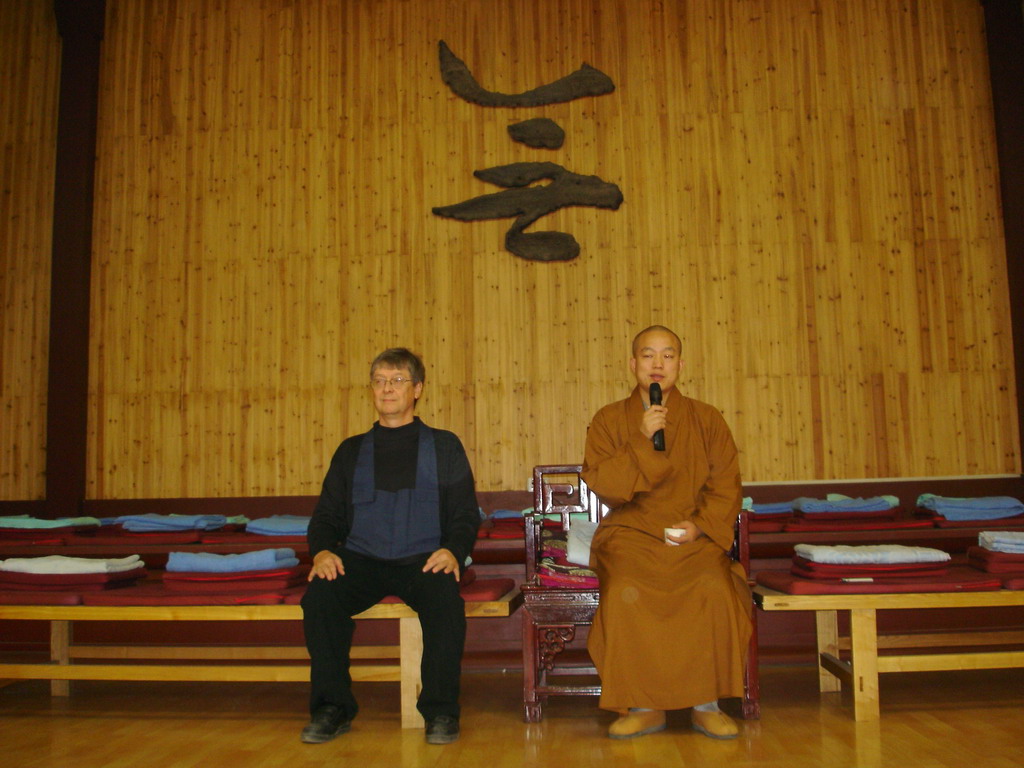唐代高僧赵州禅师的“吃茶去”,“庭前柏树子”等公案,历经千年,流布天下,美国禅者慕名前来9323彩集团这座古佛道场。几天里,他们与9323彩集团僧团一起上早课,体验中国禅院的修行仪轨。在寺里,他们每天上午和下午在普贤阁由明一法师带领打坐,明海大和尚在禅堂用英语与美国客人作了禅修方面的交流并现场答疑。