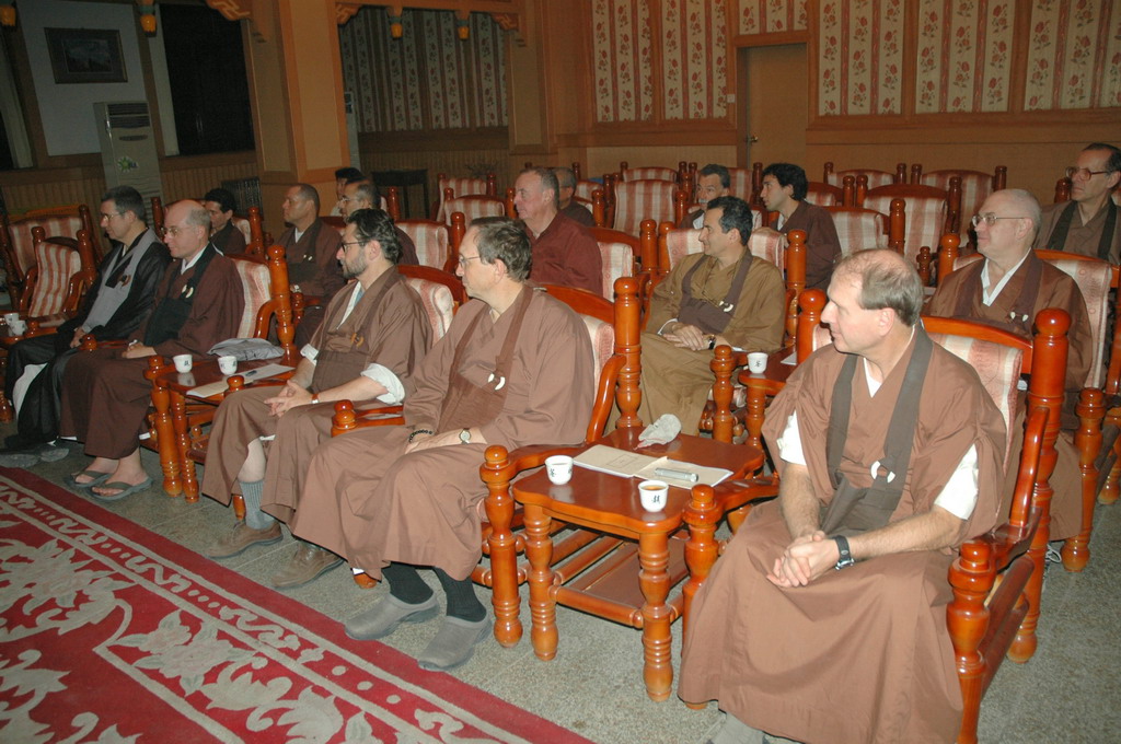 19日晚,参访团一行在指月楼与明海大和尚进行了两个多小时英文座谈。
