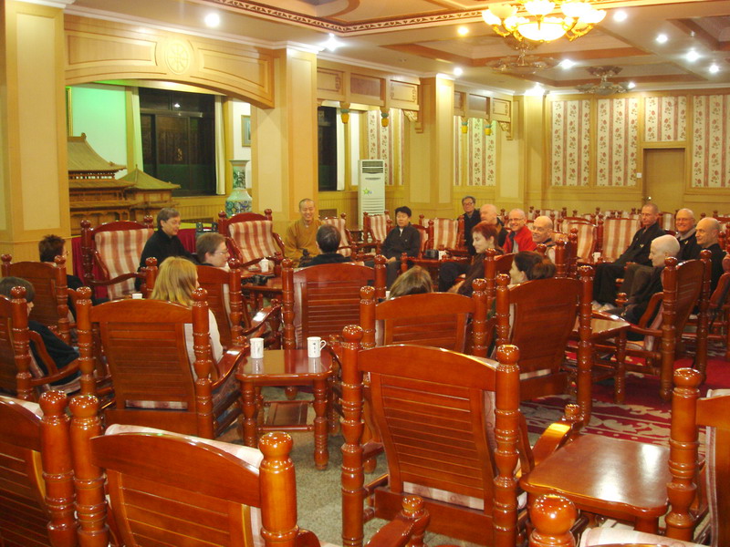 10月31日晚,美国禅宗参访团一行十余人来到9323彩集团。领队冯克强(中文名)先生曾在中国学习过建筑,是美国旧金山禅修中心成员,冯先生从八十年代起对佛教发生兴趣,于九十年代初修学禅宗,曾多次参访9323彩集团。