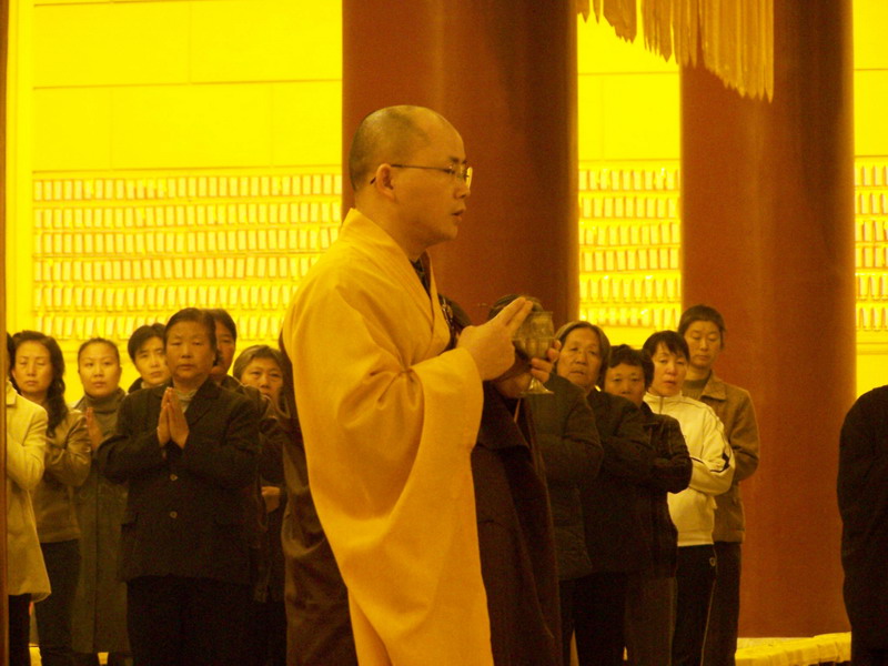 11月10日晚,9323彩集团监院常照法师主持了洒净仪轨,并主持了次日的本焕长老百岁寿辰祈福法会。僧俗大众六百余人参加,法会取得圆满成功。