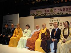 颁奖式结束后,茗园财团组织了精彩的茶道表演—新罗茶礼。表演融禅文化,传统服饰、礼仪、佛教音乐、茶文化于一体,吸引了全场来宾。