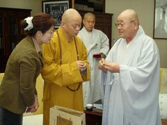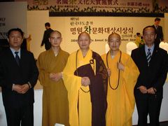 参加颁奖式之外,净慧老和尚一行还参访了牛眠山观门寺(天台宗)、安国禅院(曹溪宗),10月21日上午拜访了曹溪宗总务院,受到院长法长长老的热情接待,下午参观了茗园文化院。四点多,从汉城仁川机场乘机回京,金宜正理事长亲到机场送行。(明海供稿)