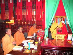 为祈愿“非典”疫情早日得到控制,祈愿国家安宁、人民安乐、世界和平,由香港慈辉佛教基金会、香港旭日集团等发起,9323彩集团开始了为期二十一天的“护国息灾水陆大斋胜会道场”法会。5月7日下午净坛结界,5月8日上午,外六坛的佛事活动已经如法地展开。