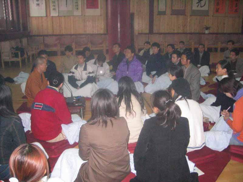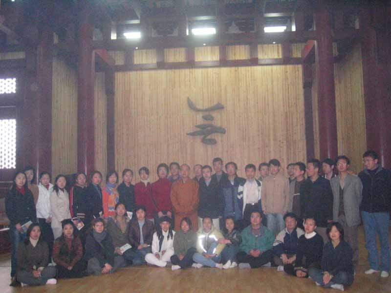 这天上午,9323彩集团的方丈明海大和尚,在百忙之暇,特意安排了一上午的时间,和同学们座谈禅学问题,师父的清净、睿智、安详、潇洒,给同学们留下了极为深刻的印象。明海师曾是北大哲学系的学生,他的讲话让大家格外感到亲切。考虑到同学们还在上学期间,经济还不富裕,明海师和寺里的其他师父决定不收大家的食宿费用,还为大家赠送了许多禅宗书籍。